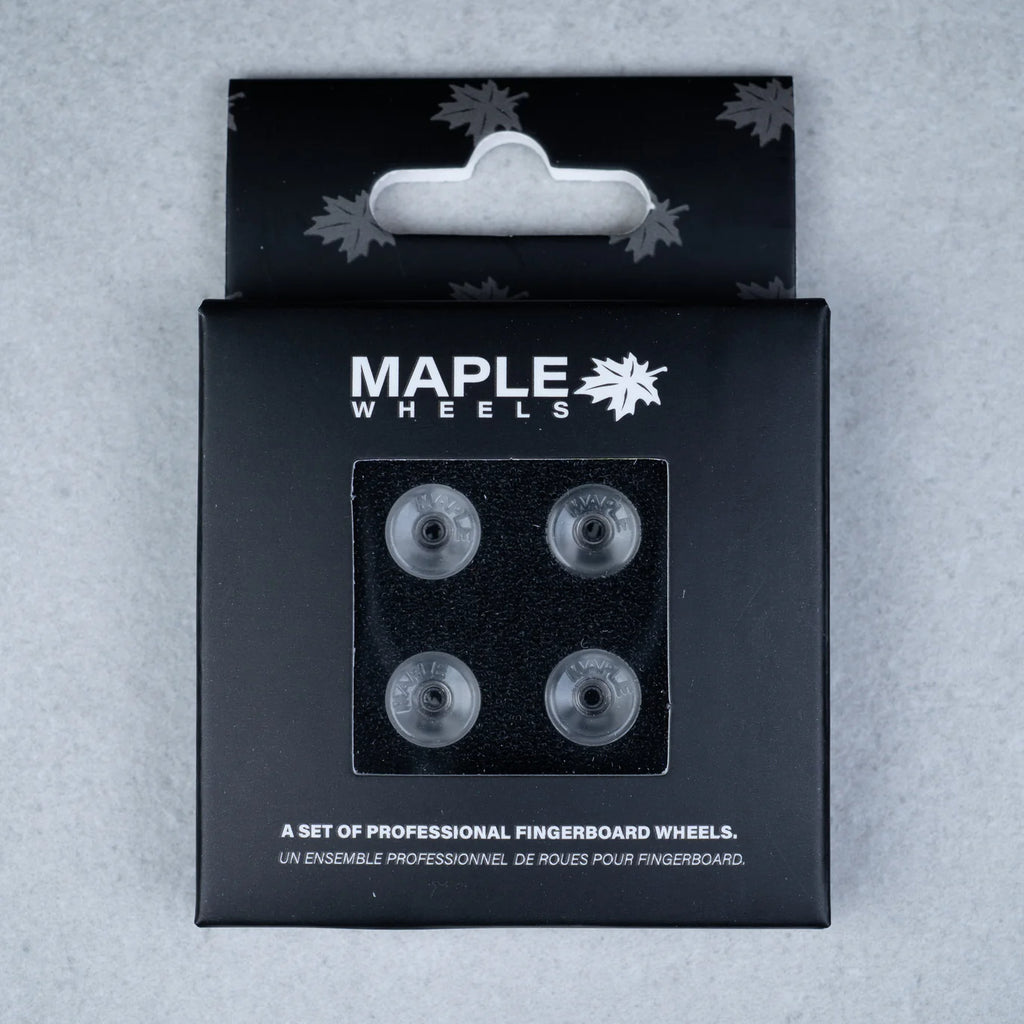 Urethane fingerboard wheels made in Québec Canada. Each wheel is 100% handmade with top-quality urethane, lots of patience, and passion! It’s currently the largest size in the Maple Wheels product line. It’s perfect for a smooth cruising vibe and it features our first signature graphic on the front of the wheel.