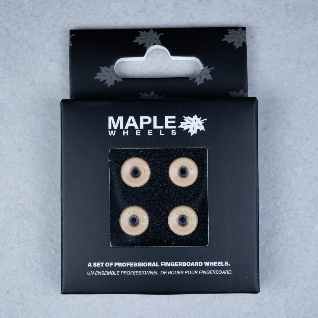 Urethane fingerboard wheels made in Québec Canada. Each wheel is 100% handmade with top-quality urethane, lots of patience, and passion! It’s currently the largest size in the Maple Wheels product line. It’s perfect for a smooth cruising vibe and it features our first signature graphic on the front of the wheel.