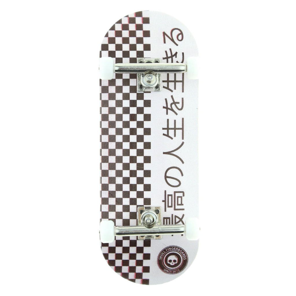 Inspired by Japanese culture, this deck features a checkerboard design. The text on the deck reads "Live your best life". We have upgraded the graphic, which is now UV printed, this provides a higher quality, more durable print.