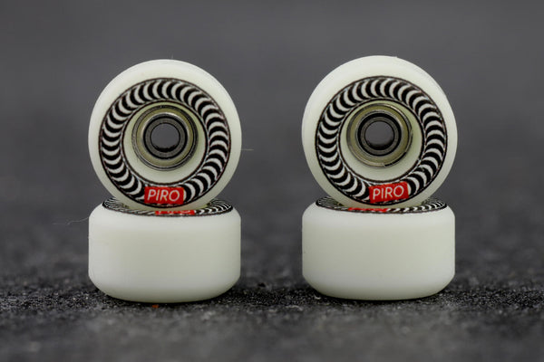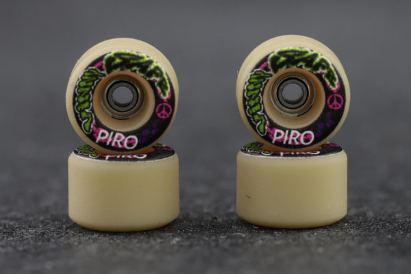 Piro premium fingerboard wheels are hand-crafted in Toronto, Canada. Each wheel features an Abec 9 bearing to ensure it spins smoothly and quickly. Made from 65D Urethane for the perfect amount of grip and squeak.